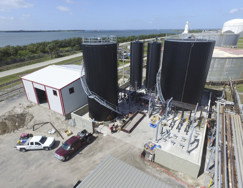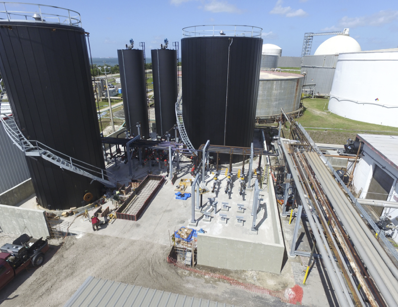 The project also includes demolition of one (1) existing API 650 tank; setting four (4) 500 HP pumps (furnished by others) and connecting them to terminal piping; providing steam jacketing and insulation for the pumps; and supplying and installing a steam snuffing system for three (3) existing tanks, with piping terminating approximately three (3) feet above grade. The new tank will be 120’-0” in diameter and 48’-0” tall, featuring a column and rafter supported cone roof, galvanized carbon steel double stringer spiral stairs, roof perimeter handrail, steam snuffing system piping, air sparger, and standard API appurtenances.